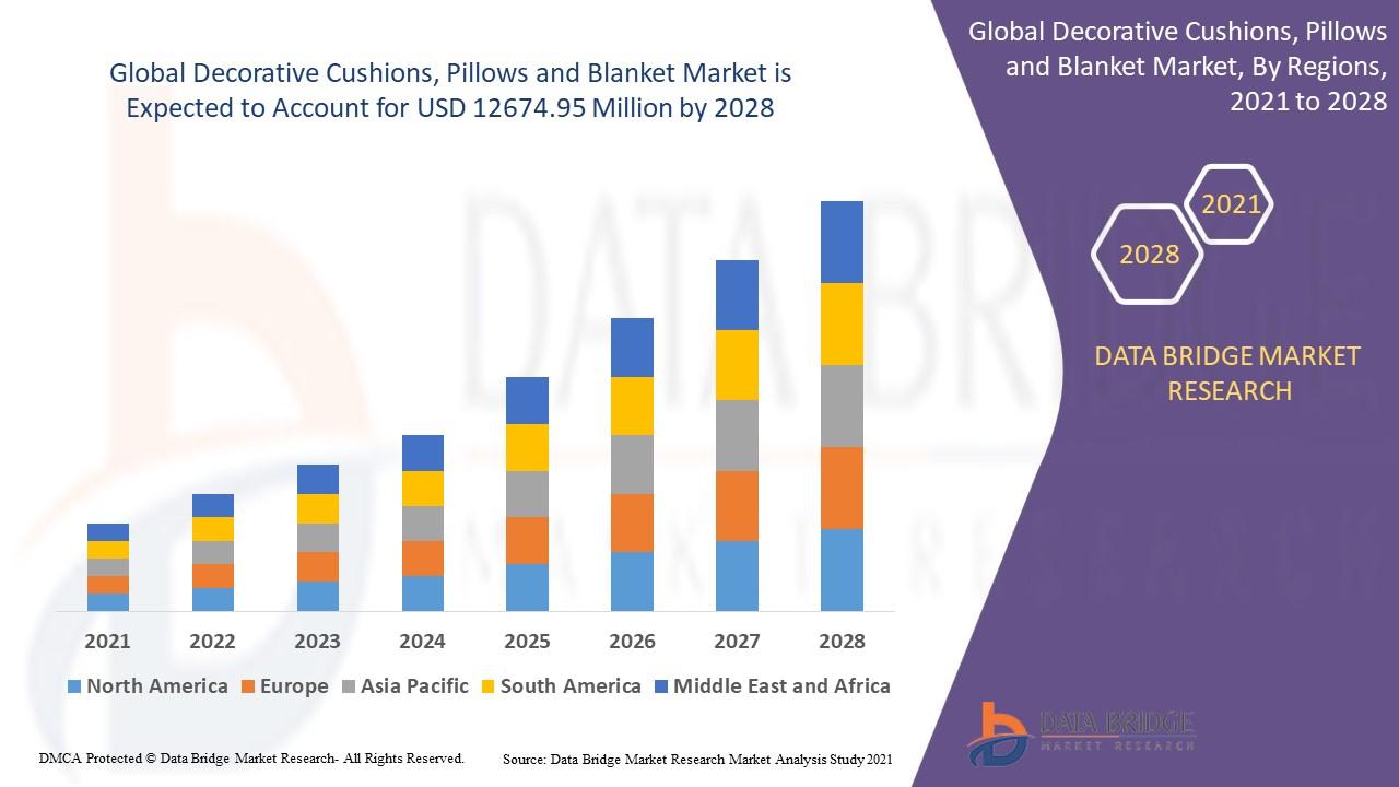 The decorative cushions, pillows and blanket market is expected to be growing at a growth rate of 11.00% in the forecast period of 2021 to 2028.In the leading Decorative Cushions, Pillows and Blanket Market Market report, industry trends have been described on the macro level, which makes it achievable to map market landscape and probable future issues. The report provides analysis and estimation of general market drivers in the form of consumer demand, government policy, and demand, which are connected with consumer buying patterns and thereby market growth and development. This market research report encompasses a thorough analysis of the market and abundant related factors that range from market drivers, market restraints, market segmentation, opportunities, challenges, and market revenues to competitive analysis. Decorative Cushions, Pillows and Blanket Market Market analysis report is also useful when launching a new product in the market or spreading out the business regionally or globally.