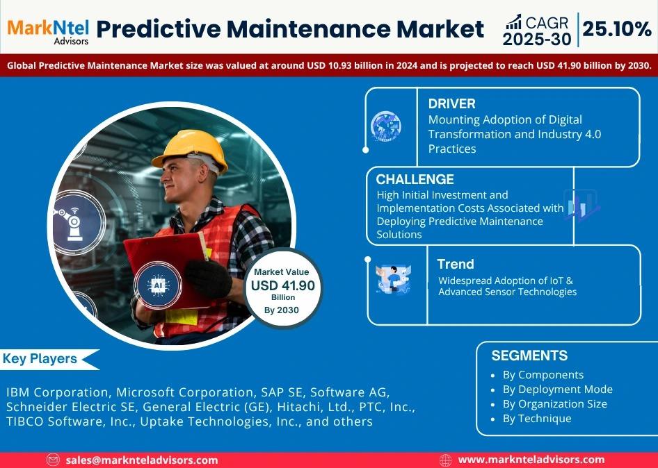 MarkNtel Advisors, a leading market research and consulting firm, has announced the release of its latest study titled Predictive Maintenance Market Research Report: Forecast (2025–2030). This report provides a detailed assessment of the Predictive Maintenance, covering its evolving dynamics, emerging trends, key growth drivers, major challenges, and competitive landscape.