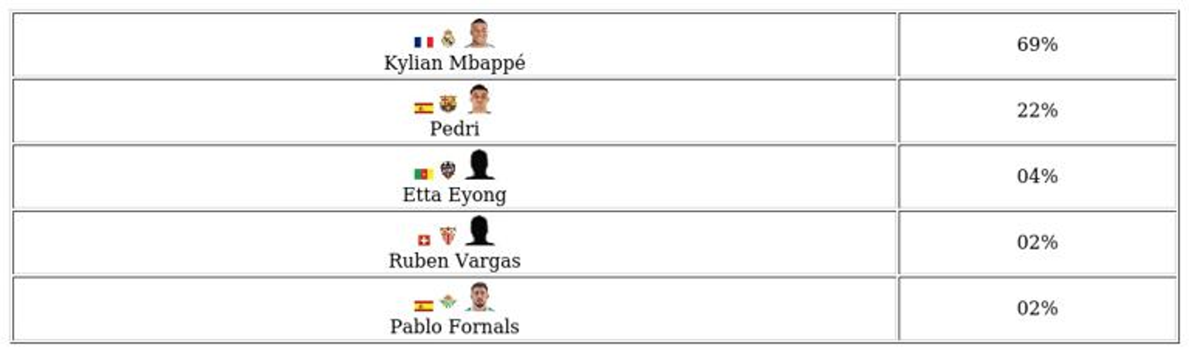 - Each La Liga season, a total of eight POTM cards are distributed, one for each eligible month.