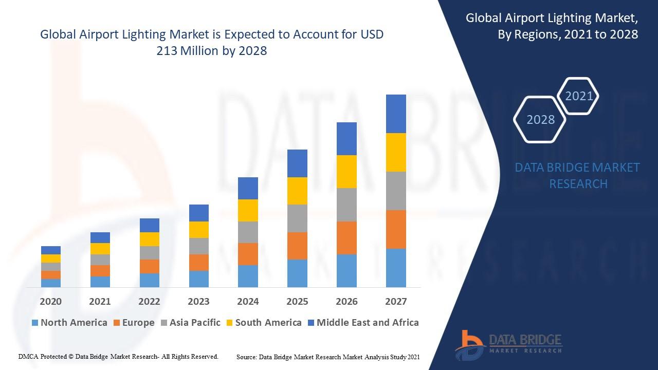 Airport lighting market will reach at an estimated value of USD 213 million by 2028 and grow at a rate of 8.95% in the forecast period 2021 to 2028. Increase in the expansion of airport infrastructure acts as the vital factor escalating the demand for airport lighting market in the forecast period of 2021- 2028.