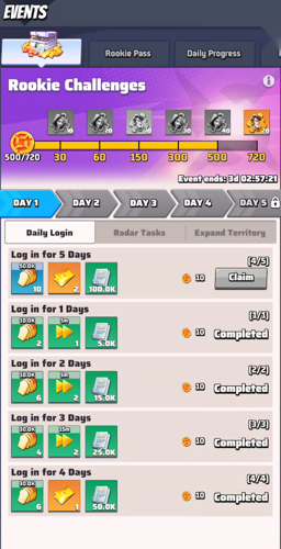As you complete each task, you accumulate event points and unlock smaller rewards. Progressing further grants you special rookie points, which are crucial for upgrading your heroes. Collecting enough rookie points—at milestones of 30, 60, 150, 300, 500, and 720—earns you additional hero shards. These shards play a vital role in enhancing your heroes’ abilities, enabling them to clear zombie-infested zones beyond your base.