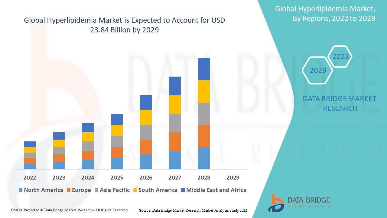 Data Bridge Market Research analyses that the hyperlipidemia market was valued at USD 18.97 billion in 2021 and is expected to reach USD 23.84 billion by 2029, registering a CAGR of 2.90% during the forecast period of 2022 to 2029. By utilizing few steps or a number of steps, the process of formulating this Hyperlipidemia Market research report is commenced with the expert advice. The base year for calculation in the report is considered, while the historic year suggests how the Hyperlipidemia Market is going to perform in the forecast years by informing you about the market definition, classifications, applications, and engagements. A range of definitions and classifications of the Hyperlipidemia Market industry, applications of the keyword market industry, and chain structure are given in the report.